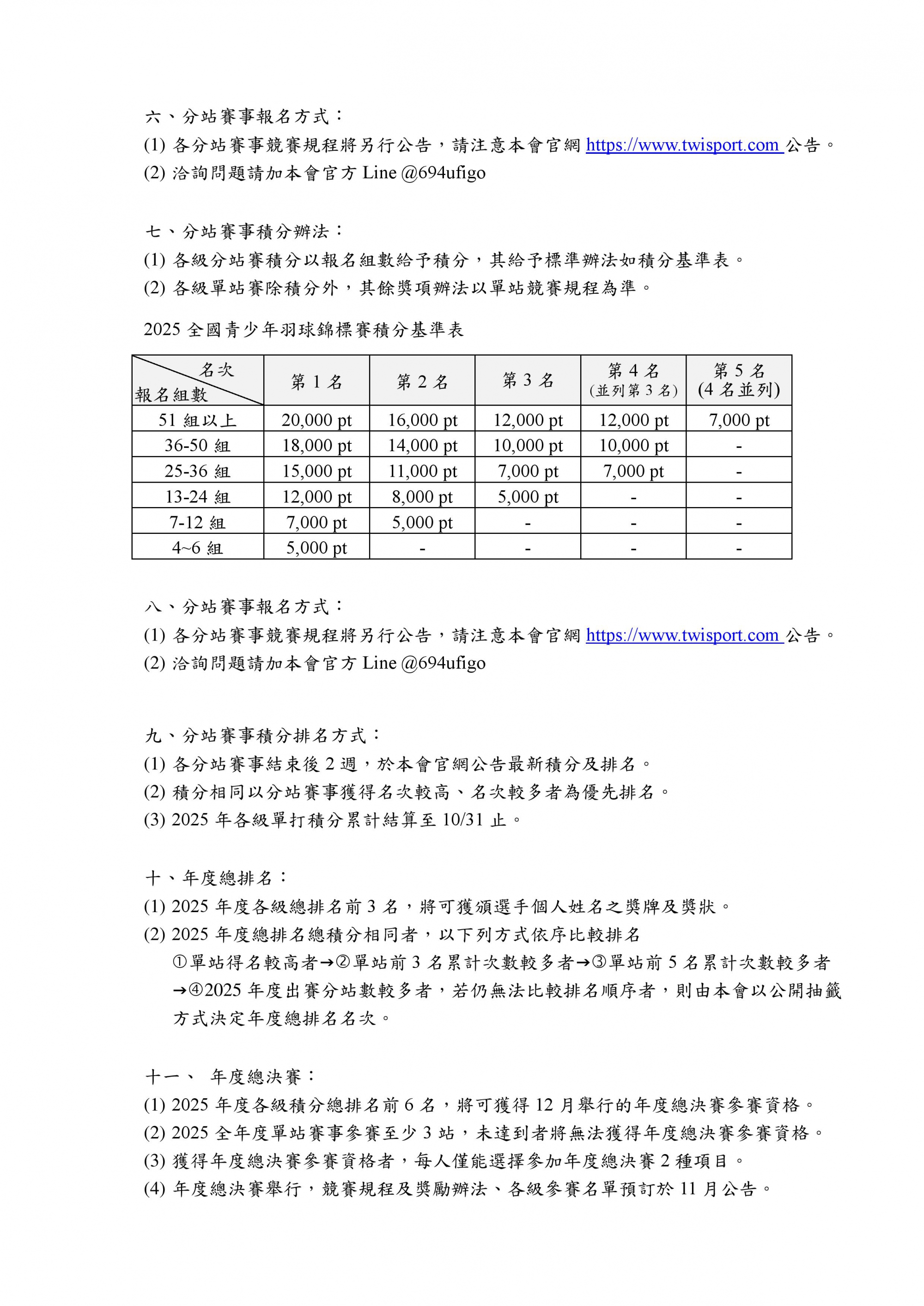 各分站賽競賽規程將會個別公告(例:113年度青年盃、114年度臺灣盃....等等)